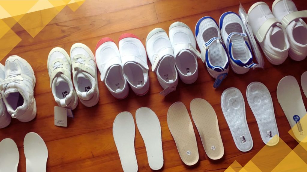 足育を実践している家庭で実際に履いている上履きの紹介や、