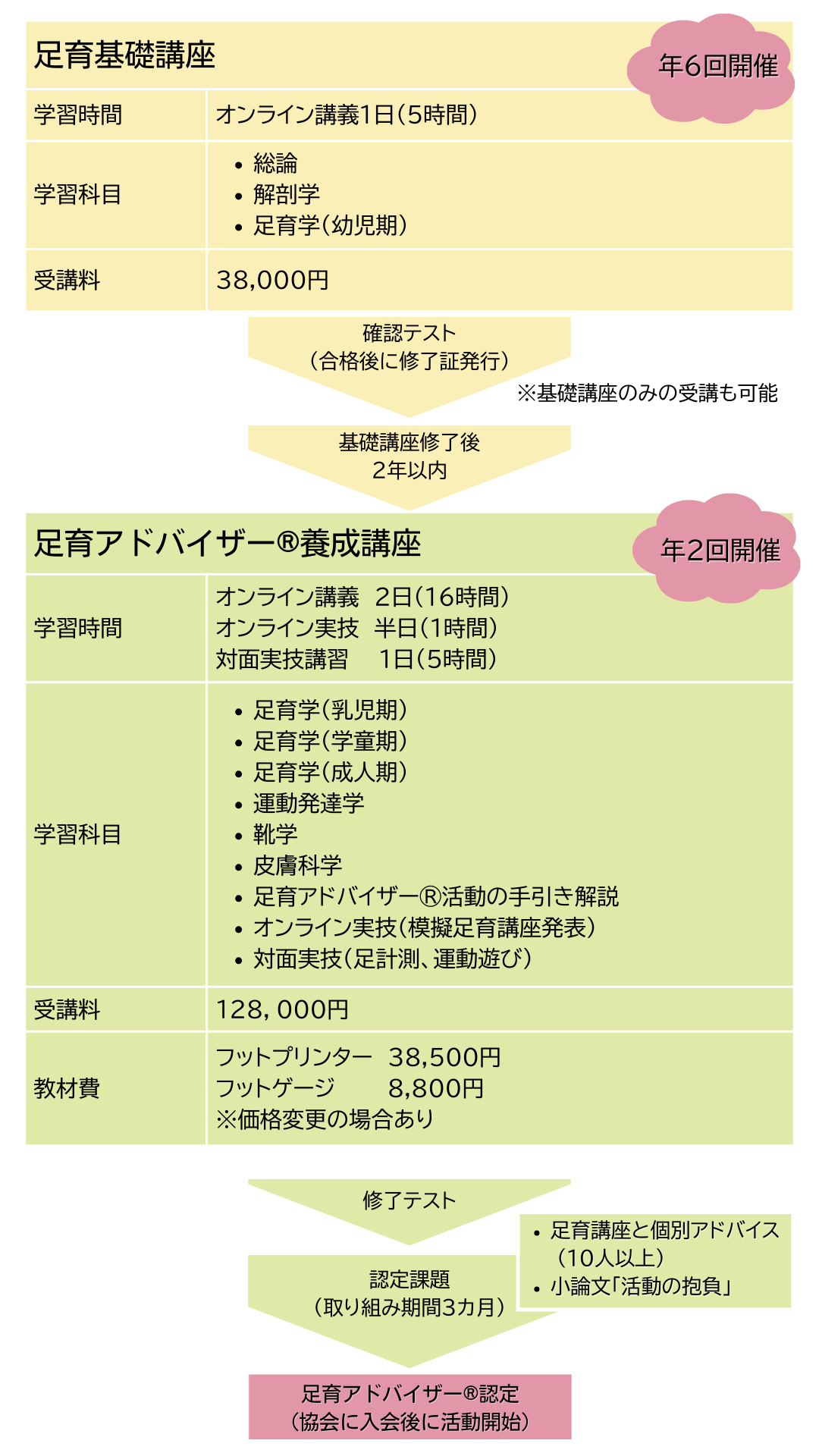 A:日本足育プロジェクト協会では、足育講座の開催には「足育アドバイザー養成講座」の受講と、認定課題への取り組みが必要だと考えています。
